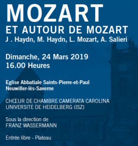 à 16 heures, Abbatiale Saints-Pierre-et-Paul, Neuwiller-lès-Saverne MOZART ET AUTOUR DE MOZART  vous fera entendre WOLFGANG AMADEUS, bien-sûr, son père LEOPOLD